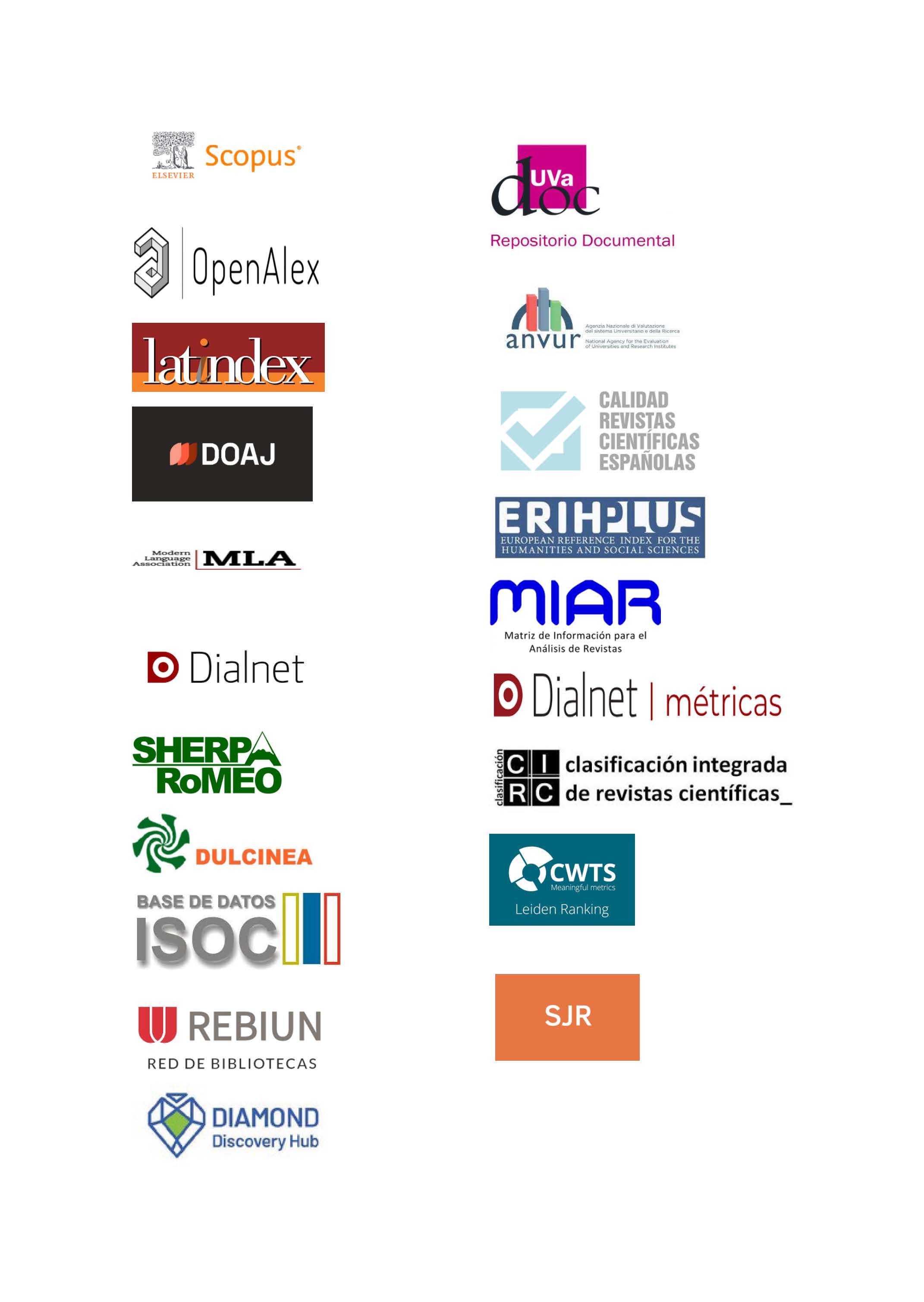 SIGLO XXI. LITERATURA Y CULTURA ESPAÑOLAS (E-ISSN 2172-7457) está indexada en varios directorios, bases de datos y recursos de indización.